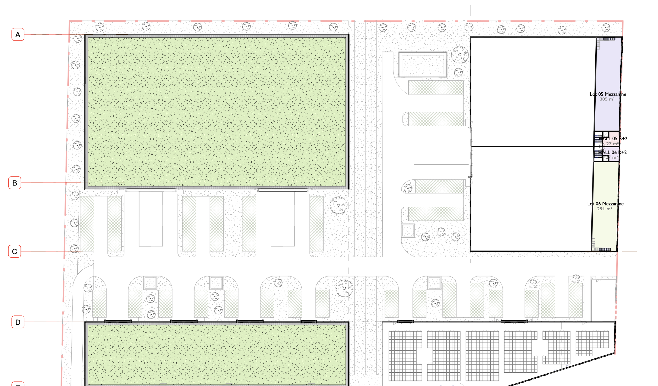 Le parc se compose de 4 bâtiments (A, B, C, D), reposant sur :